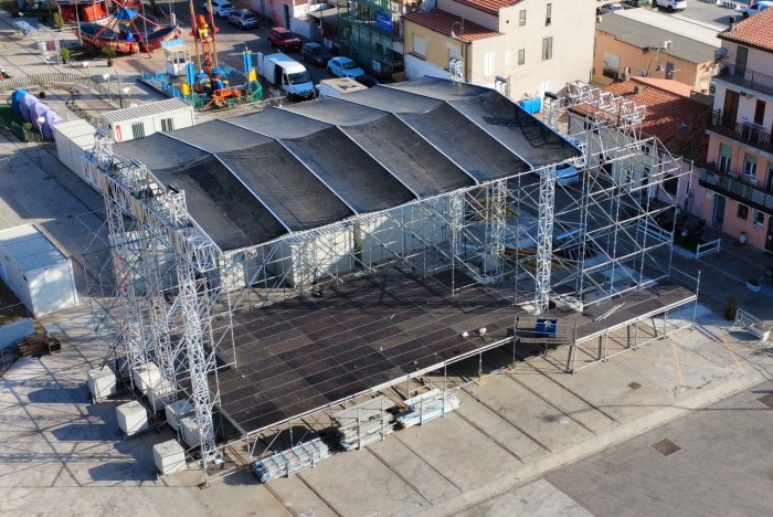 Noleggio e Montaggio di Palchi Modulari, di ogni dimensione e altezza; Palchi e Torri Layer, tutto con le certificazione di legge. Ground Support e Coperture di varie dimensioni ed elevata portata. Tribune coperte o scoperte di varie dimensioni.